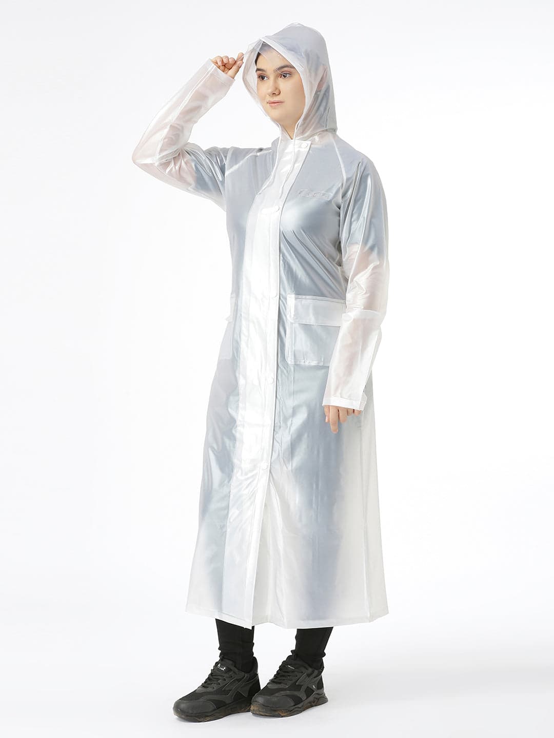 - Hooded Long Raincoat: The hood in the jacket comes with a drawstring to provide complete protection to your head against rain.