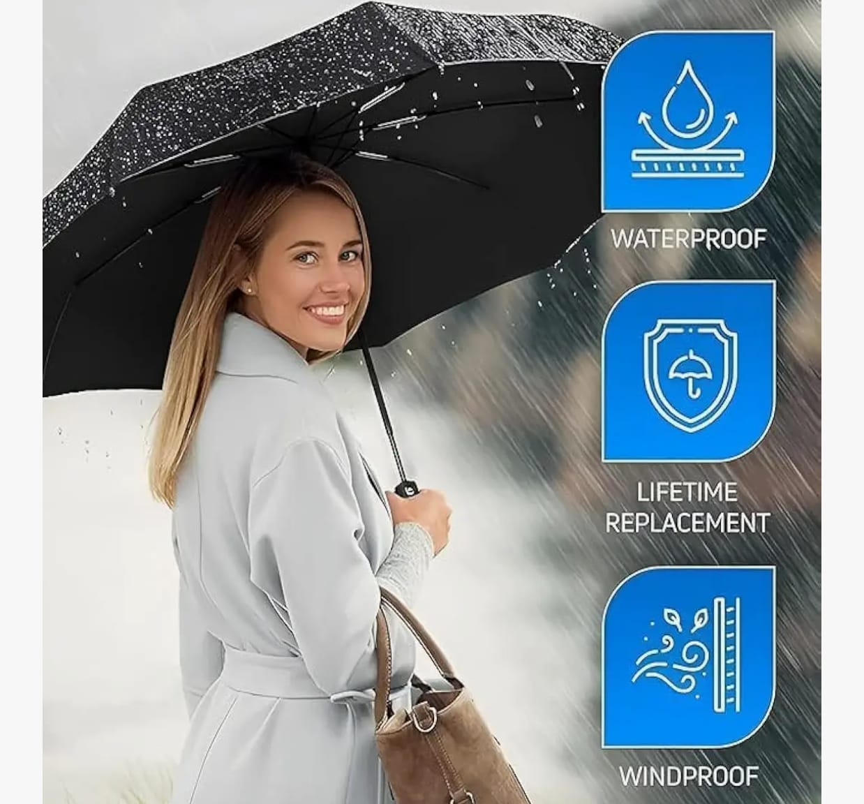 • Easy to Grip Wind Resistant Umbrella: Strong wind gusts and heavy rains can make it hard to hang onto your umbrella, that's why our strong windproof umbrella has a rubberized non slip handle for better grip