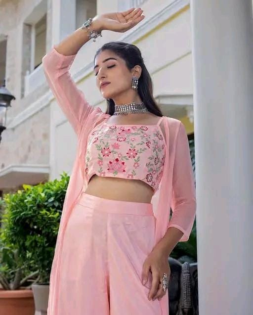 Type : Crop Top, Jacket & plazzao
