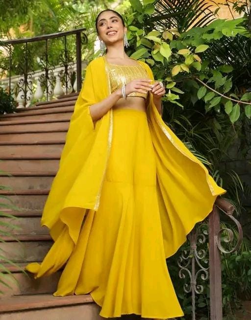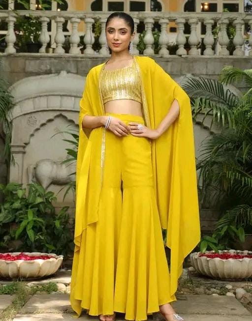 Type : Crop Top, Jacket & plazzao